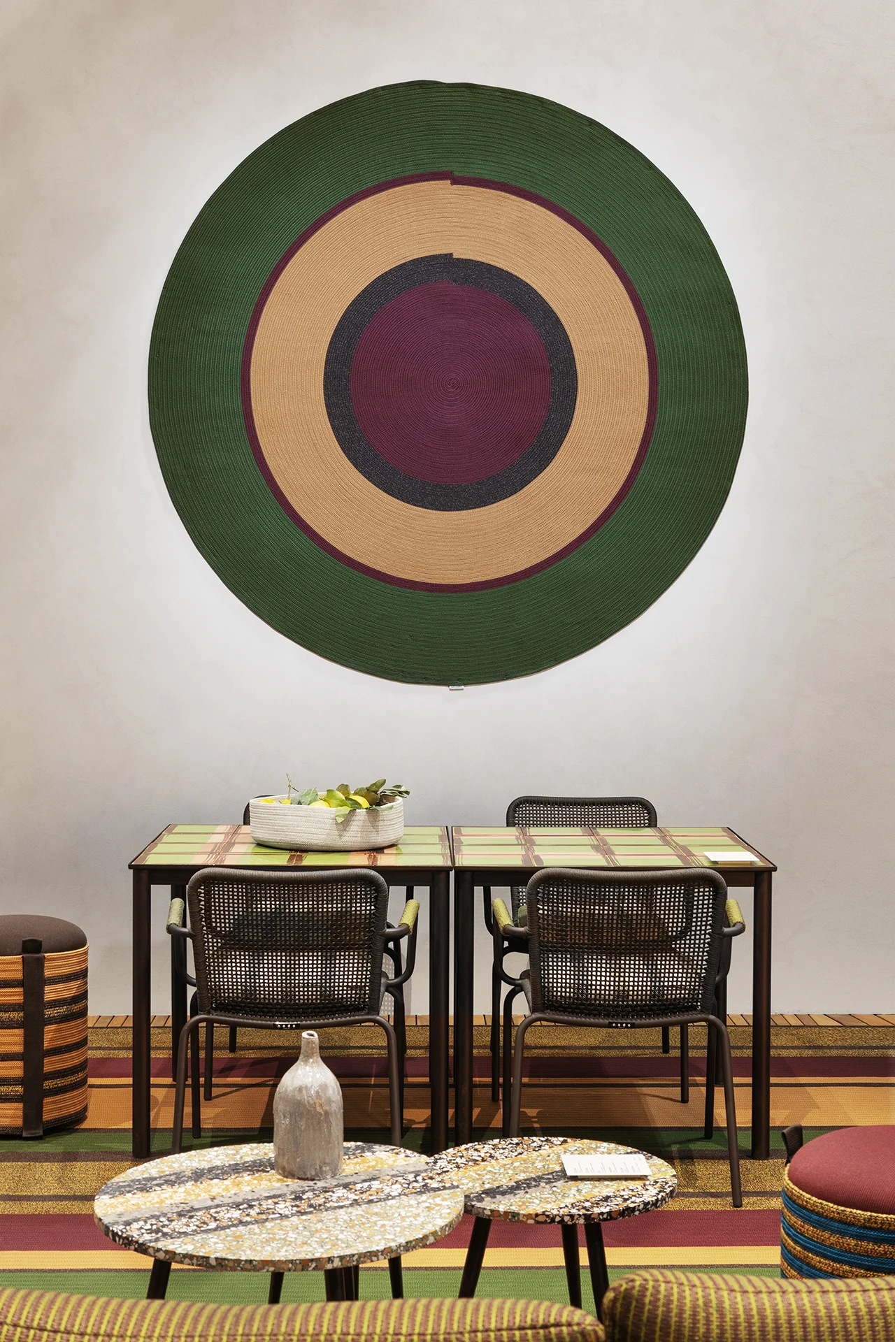 Antonio Marras firma una collezione di tappeti in corda cuciti a mano, ciascuno un capolavoro di artigianalità realizzato con cura in Italia utilizzando le migliori corde Olyna™. Indistruttibili, esclusivi ed eleganti, questi tappeti nascono dalla sua personale tavolozza di colori e riflettono il suo stile visionario in ogni linea e in ogni vibrante sfumatura. I tappeti vanno oltre l’ordinario, trasformando il pavimento in una galleria vivente e ponendo le basi per un mondo di colori, oggetti, sensazioni e suggestioni che la vita saprà offrire.